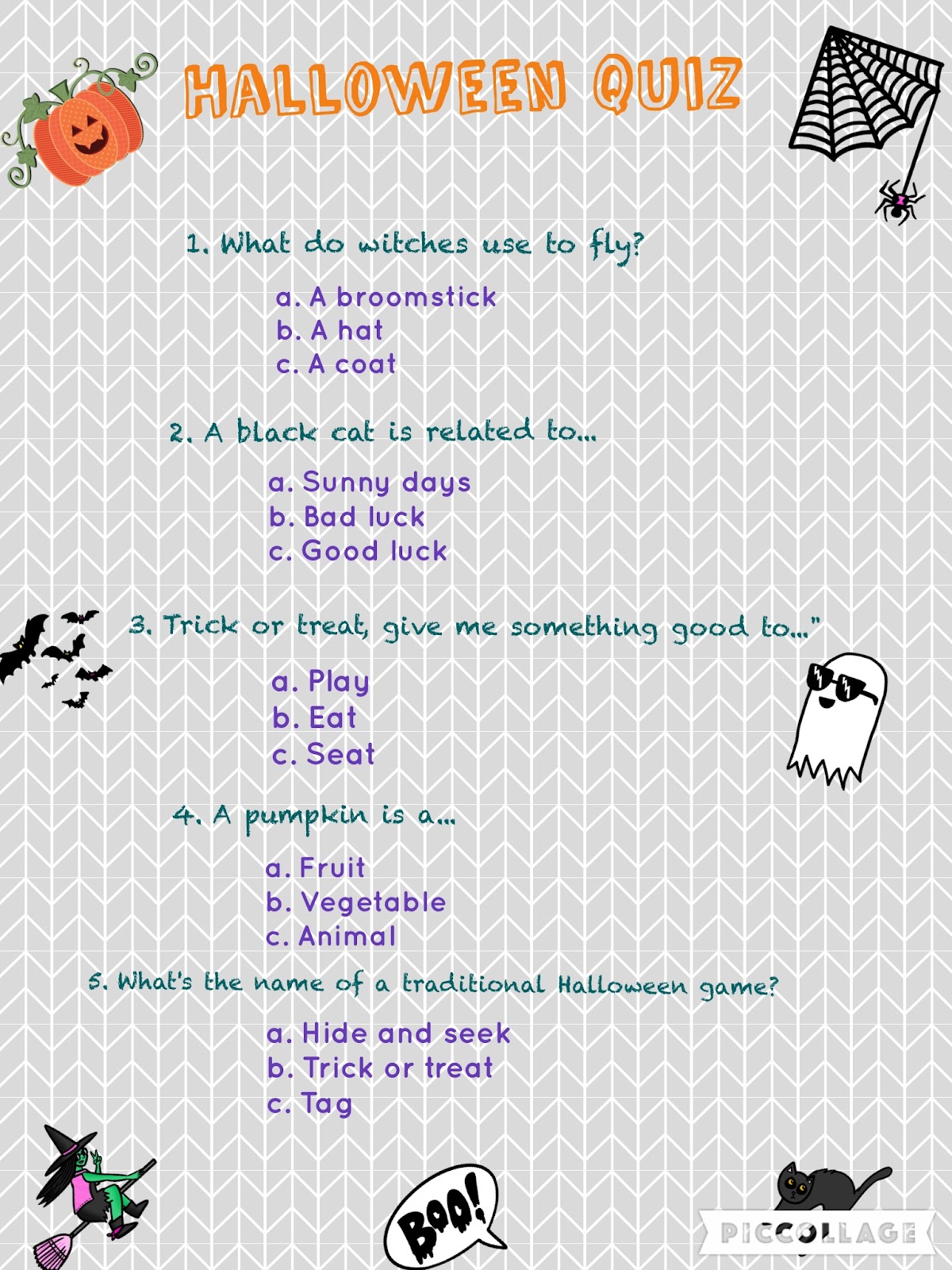 10 Best Halloween Candy Trivia Questions Printable Printablee Com from printablee.com October is most known for its halloween celebrations, but it's also a month full of national and international events. Americans typically refer to this time of year as "fall," … How many years did prohibition last in the us? It is usually scheduled between the month of september and october. What was the original name of diet pepsi? Nov 04, 2021 · this october trivia quiz is great for the october trivia night competitions. Furthermore, diwali, the hindu festival of lights, always falls in october, and religious festivals yom kippur and sukkot occasionally happen in this month listed in october trivia questions and answers. How many bends does a standard paperclip have?